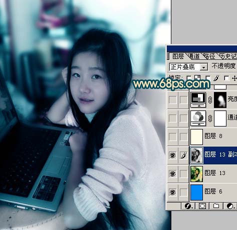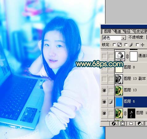 | 8、新建一個圖層,蓋印圖層,然后把圖層混合模式改為“柔光”,然后在剛才蓋印圖層下面新建一個圖層,填充顏色:#0089f9,圖層混合模式改為“濾色”,效果如圖11。 |