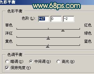 | 13、創建色彩平衡調整圖層,參數設置如圖20,效果如圖21。 |