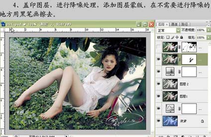 | 4、新建一個(gè)圖層,蓋印圖層,進(jìn)行降噪處理,加上圖層蒙版,在不需要進(jìn)行降噪的地方用黑色畫筆擦去。 |