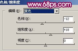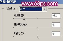 | 4、創(chuàng)建色相/飽和度調(diào)整圖層,參數(shù)設(shè)置如圖7,效果如圖8。 |