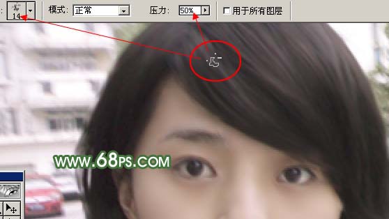 | 8、選擇減淡工具透明度10%左右,把人物臉上有反光的地方涂亮一點,效果如圖15。 |
