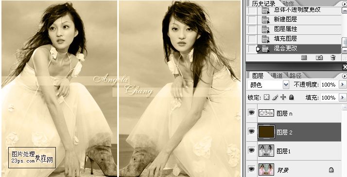 3、新建圖層2,填充顏色#3f2d05,圖層混合模式改為“顏色”