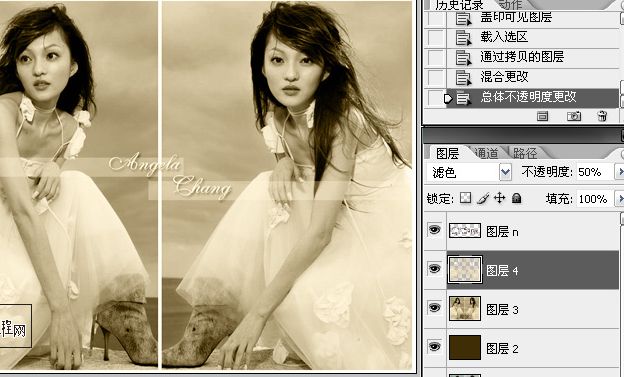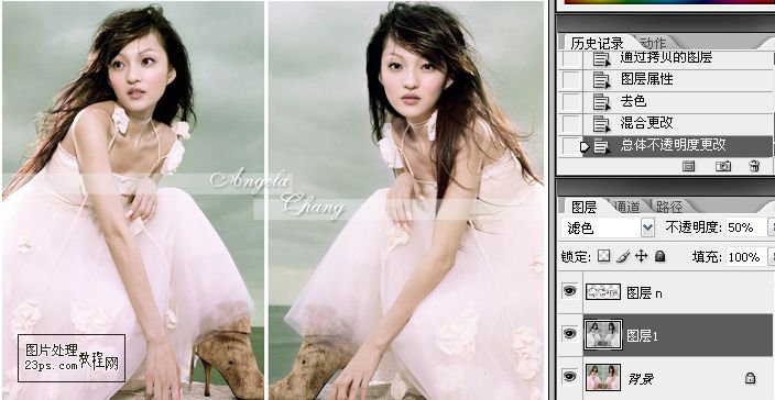 2、將去色后的圖層1的混合模式改為“濾色”,不透明度為50%