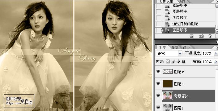 4、再次復制背景圖層,將其拖到剛才顏色圖層的下面