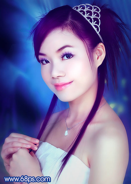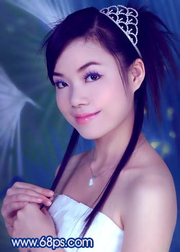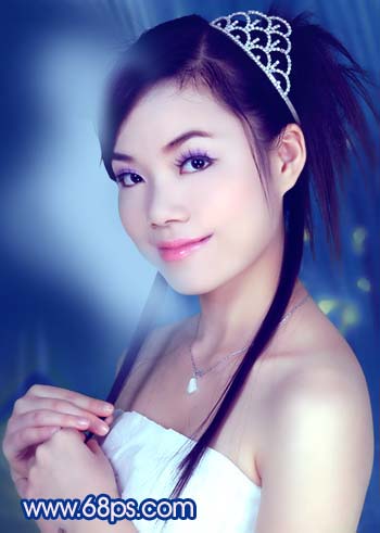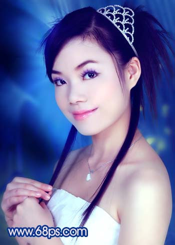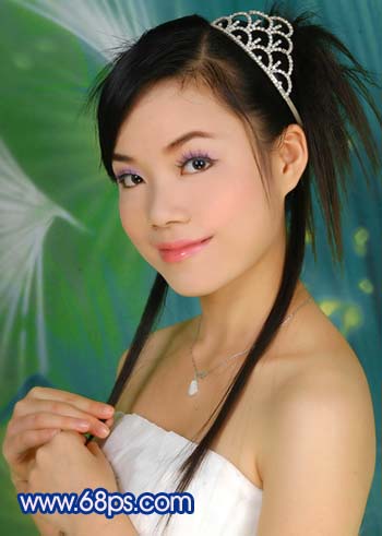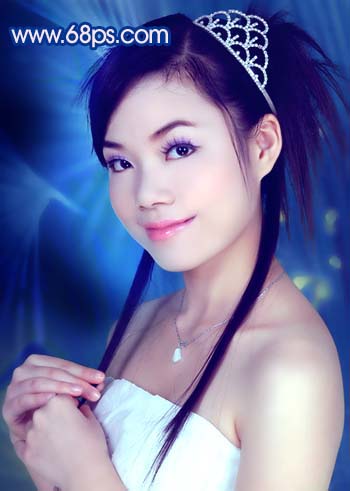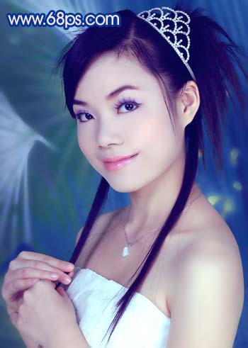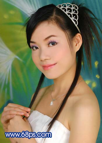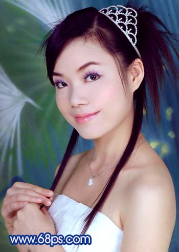 原圖素材為影樓拍攝效果,照片質量非常不錯。不過人物臉部少了點質感。調色的目的只是嘗試照片在不同的顏色下所表現的意境同。