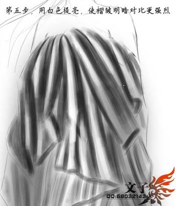 5、用白色提亮,使褶皺明暗對比更強烈。
