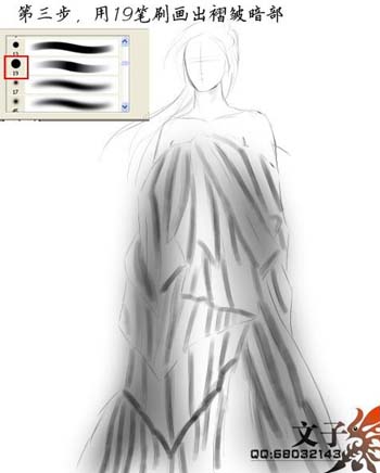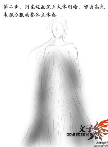 2、用柔邊畫筆上大體明暗,留出高光變現衣服的整體立體感。