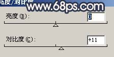 | 8、創(chuàng)建亮度/對(duì)比度調(diào)整圖層,參數(shù)設(shè)置如圖10,效果如圖11。 |