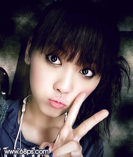 | 9、新建一個(gè)圖層,蓋印圖層,選擇減淡工具把人物臉上有反光的地方涂亮一點(diǎn),再把人物嘴唇調(diào)紅一點(diǎn)。 |