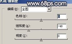 | 6、創(chuàng)建色相/飽和度調(diào)整圖層,參數(shù)設(shè)置如圖7,確定后用黑色畫筆把人物部分擦出來(lái),效果如圖8。 |