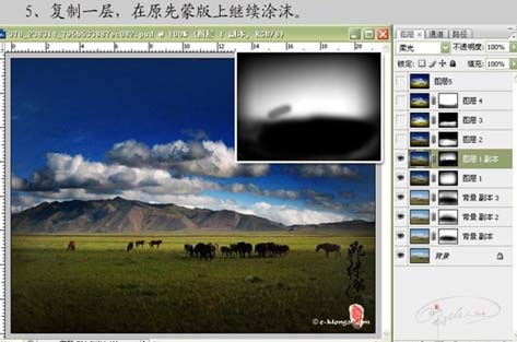 | 5、復(fù)制一層,在原先蒙版上繼續(xù)涂抹。 |