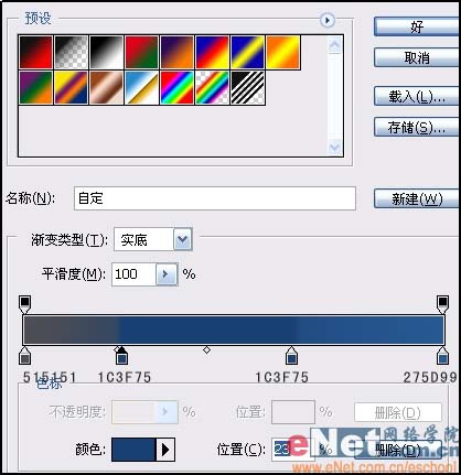 | 13、在原來的的按鈕基礎上在建立一個稍小些的正圓,顏色代碼用1e339c: |