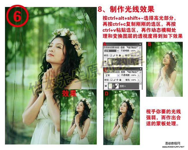 | 8、合并所有圖層,按ctrl + alt + ~調出高光選區,按ctrl + c復制選區內容部分,新建一個圖層,按ctrl + v粘貼,執行:濾鏡 > 模糊 > 動感模糊。加上圖層蒙版用黑色畫筆擦掉不需要部分。 |