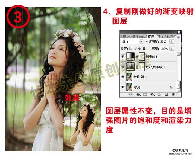 | 4、把漸變映射調整圖層復制一層,圖層屬性不變,目的是增強圖片的飽和度和渲染力度。 |