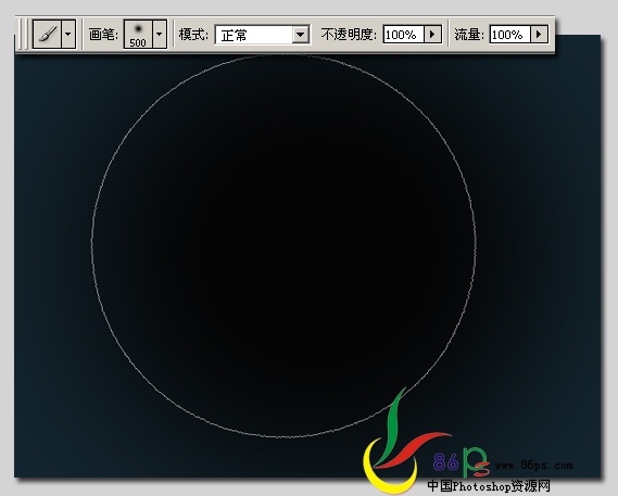 2、用一個大的軟邊畫筆,前景黑色,在畫布中間點一下,給畫布增加深度。