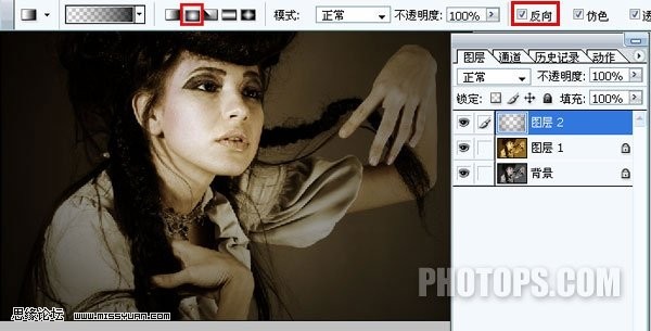 7.選擇漸變工具(g),做黑色到透明的徑向漸變