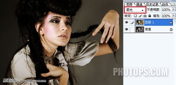 3.將圖層模式改為“柔光”