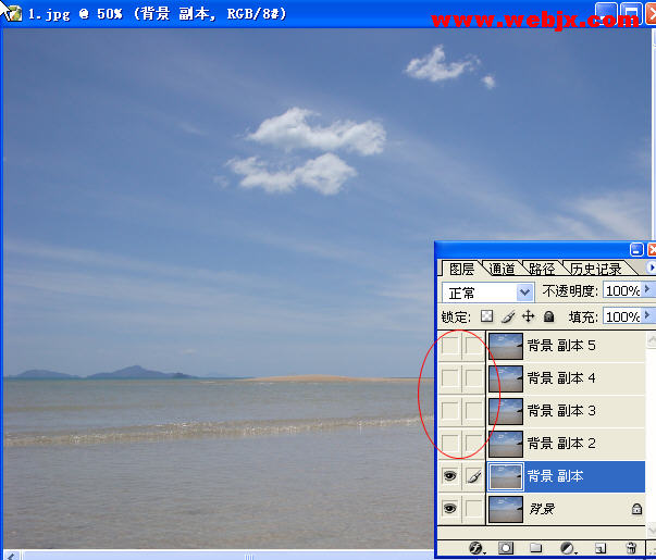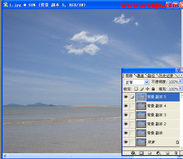 打開原圖,復制背景層5次: