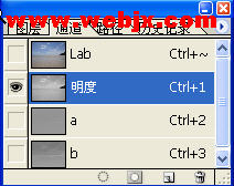 選擇“背景副本4”,把圖像模式設置為“lab顏色”模式, 然后把通道模式設置為“明度”:
