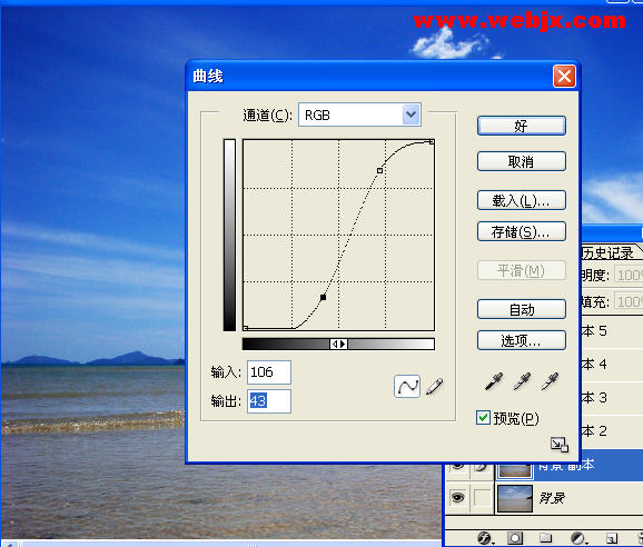 然后按ctrl+m調整背景 副本圖層的曲線,設置如下: