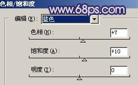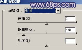 | 4、創(chuàng)建色相/飽和度調(diào)整圖層,參數(shù)設(shè)置如圖6-8,效果如圖9。 |