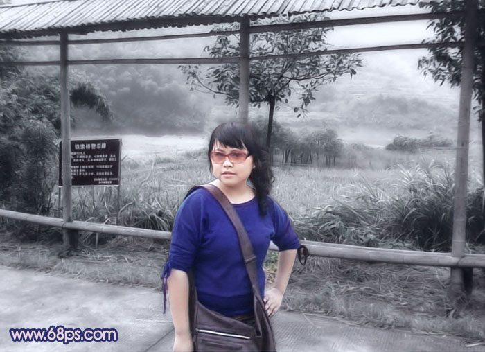 | 7、新建一個(gè)圖層,蓋印圖層,按ctrl + shift + u去色,然后把圖層不透明度改為:40%,加上圖層蒙版,只保留人物部分其它部分用黑色畫(huà)筆擦掉,效果如圖14。 |