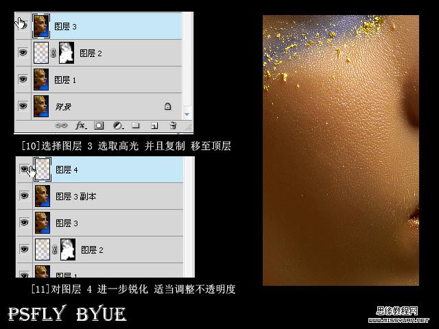 10、選擇圖層3,按ctrl + alt + ~調出高光選區,按ctrl + j把選區部分復制到新的圖層,按ctrl + shift + ]移到圖層的最上面。