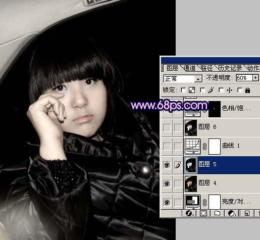<圖4> 4、新建一個圖層,蓋印圖層,按ctrl + shift + u去色,然后把圖層不透明度改為:60%,效果如圖5。