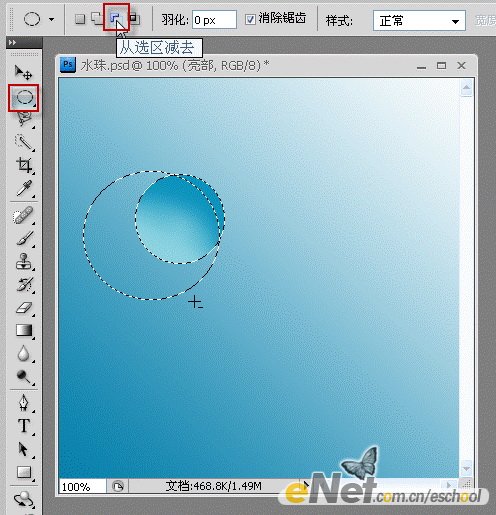 第三步:點擊圖層調板下方的【創建新圖層】按鈕,新建一層,并命名為【水珠】。選擇【橢圓選框工具】,
