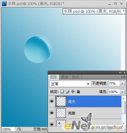 【水珠】。在工具箱中選擇【移動工具】,按住【alt】鍵不放,拖動鼠標。這樣可以復制【水珠】圖層,得到一顆