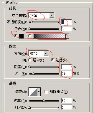 3.對“圓”這層加載圖形樣式。實現按鈕的效果全靠這一步。圖層樣式里有取之不盡的寶藏,大家多發掘吧!這里我用了4種 圖層樣式效果。