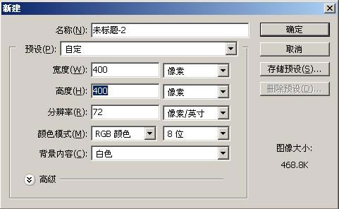 1.ps下建立一個400*400的圖像,背景設置為白色。
