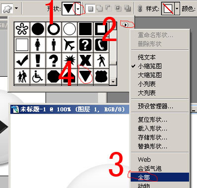 4.做到這一步,就是添加按鈕了。新建層,選擇“自定義形狀工具”,選擇你需要的三角形。