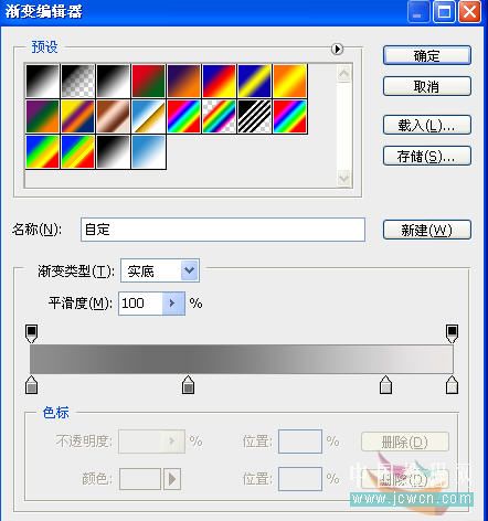 | 13、新建一空白層,按ctrl鍵不放點一下圖層1的縮略圖,載入圓形選區,取漸變工具,對漸變色進行編輯如圖10。 |