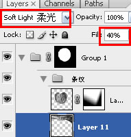 先設置一下圖層透明度,下面一個下拉框設置為0%