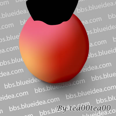 (注:呃,教程里漏了一步,蘋果右下角最好再加一點白色的漸變,是反光。完成圖是畫了反光的,中間的圖都沒畫。記得畫一個透明一點的白色漸變在右下角就行啦。)