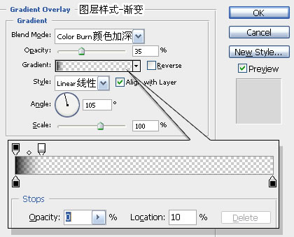 先設置一下圖層透明度,下面一個下拉框設置為0%,然后設置圖層樣式里的漸變,注意:設置完先不要按“保存”