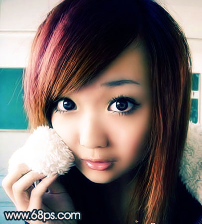 | 7、新建一個圖層,蓋印圖層,選擇減淡工具適當的把人物臉上有反光的部分涂亮一點,效果如圖15。 |