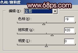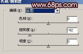 3、創建色相/飽和度調整圖層,參數設置如圖4,效果如圖5。