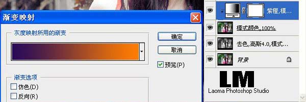 3、創建漸變映射調整圖層,參數設置如下圖,確定后按ctrl + g加上剪貼蒙版。