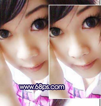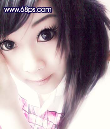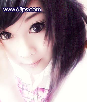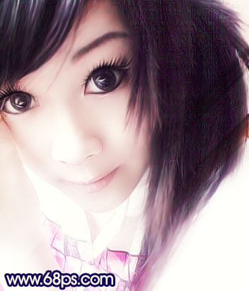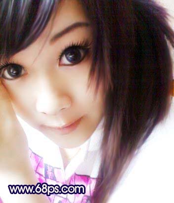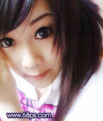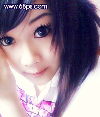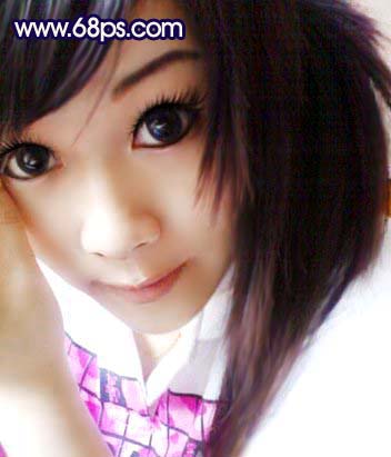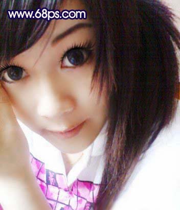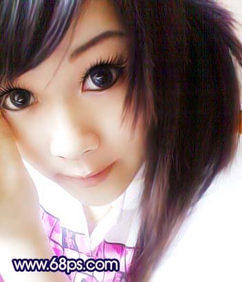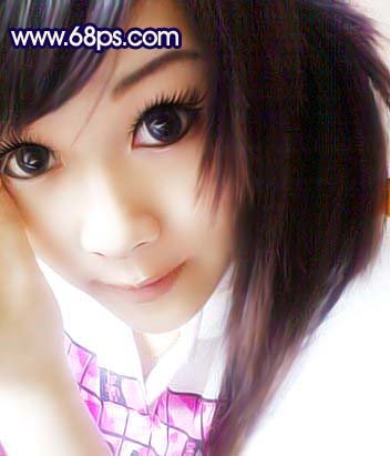 教程的素材為手機照片,像素不是很好,人物臉上有很多色塊。處理的時候先把色彩調均勻,然后再修復五官部分,最終加上朦朧效果即可。
