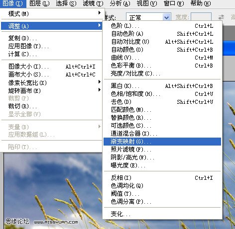 2、圖像—調整—漸變映射,如圖1,設置如圖2,圖層模式為:色相,填充改為60%。