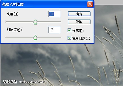 9、選擇菜單:圖象—調整—亮度/對比度,設置如圖5。