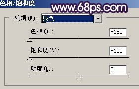 2、創建色相/飽和度調整圖層,對綠色進行調整,參數設置如圖2,效果如圖3。