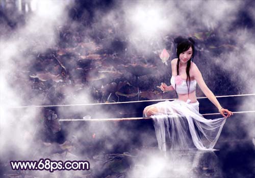 3、新建一個圖層,按字母“d”,把前背景顏色恢復到默認的黑白,然后執行:濾鏡 > 渲染 > 云彩,確定后按ctrl + alt + f多按幾下,云彩效果自己滿意為止。