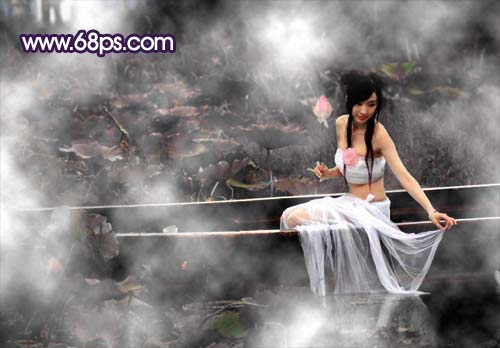 4、把云彩圖層的圖層混合模式改為“濾色”,加上圖層蒙版用黑色畫筆把人物臉部擦出來,效果如圖5。