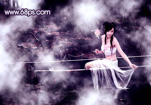 本教程調色有點另類。素材圖不管是背景及人物部分都是非常完美的。不過制作的時候,背景等部分做了很大的調整。感覺有種另類的美。