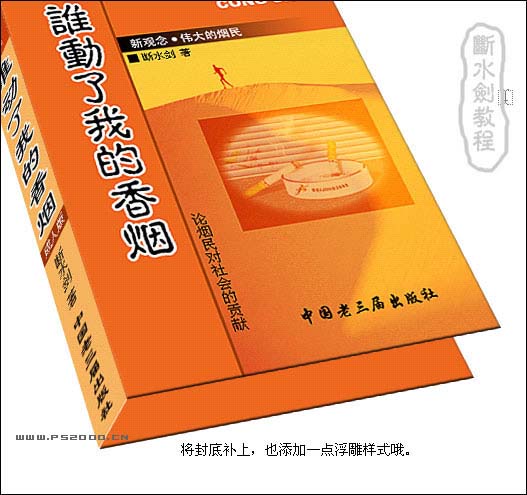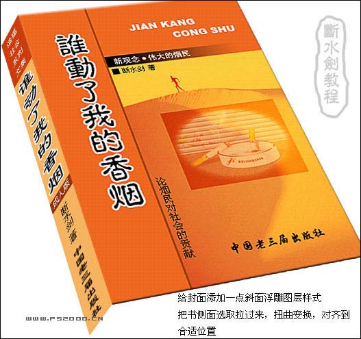 2、給封面添加一點斜面浮雕圖層樣式,把書側面選取拉過來,扭曲變換,對齊到合適的位置。