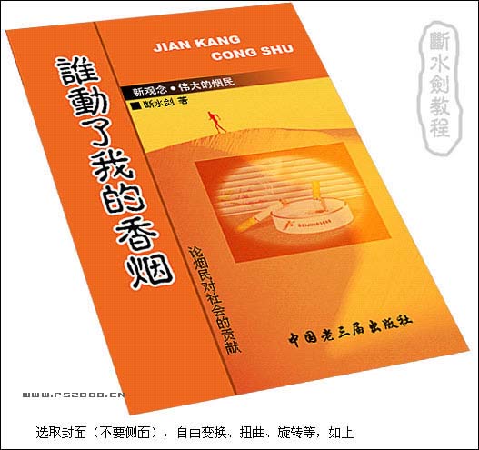 1、打開封面素材,選區正面部分,復制到新的圖層,自由變換,扭曲,旋轉得到下圖效果。