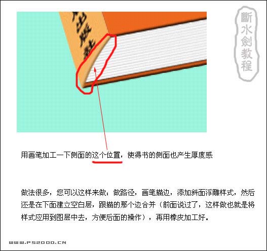 9、用畫筆加工一下側面的這個位置,使得書的側面也產生厚度感。